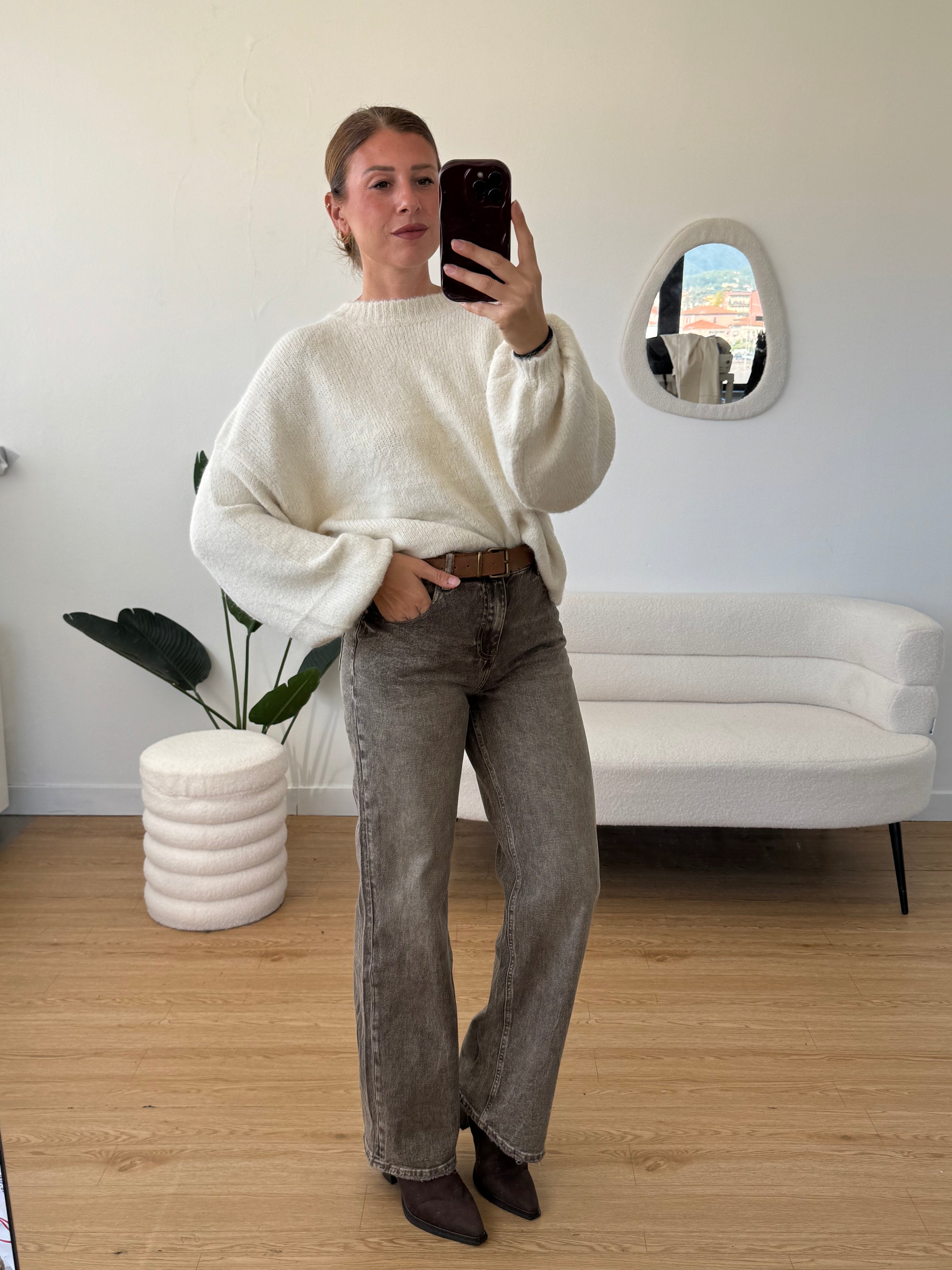 Jeans sabbiato modello straight con cintura